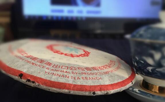 97水藍(lán)印整個(gè)茶面的下方是“中國(guó)土產(chǎn)畜產(chǎn)進(jìn)出口公司云南省茶葉分公司”字樣,其中“葉”字用了繁體“葉”字!